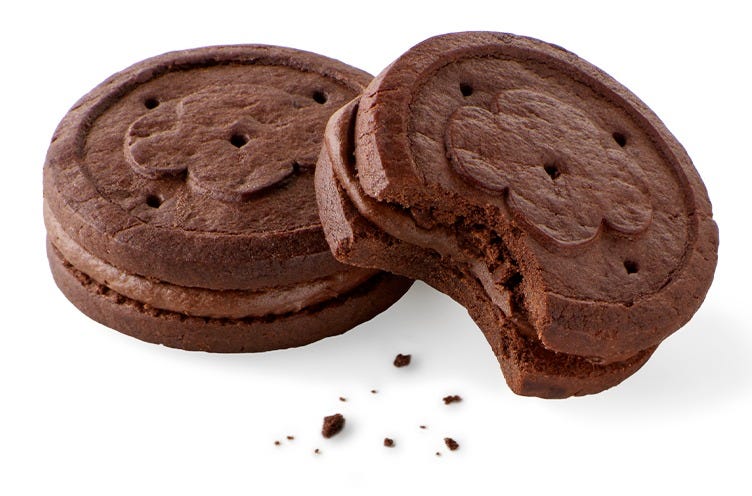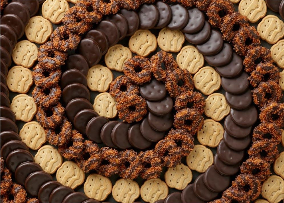 The new cookie for 2026 is the Exploremore, a chocolate sandwich cookie with chocolate-marshmallow-almond cream filling. Think Rocky Road ice cream.